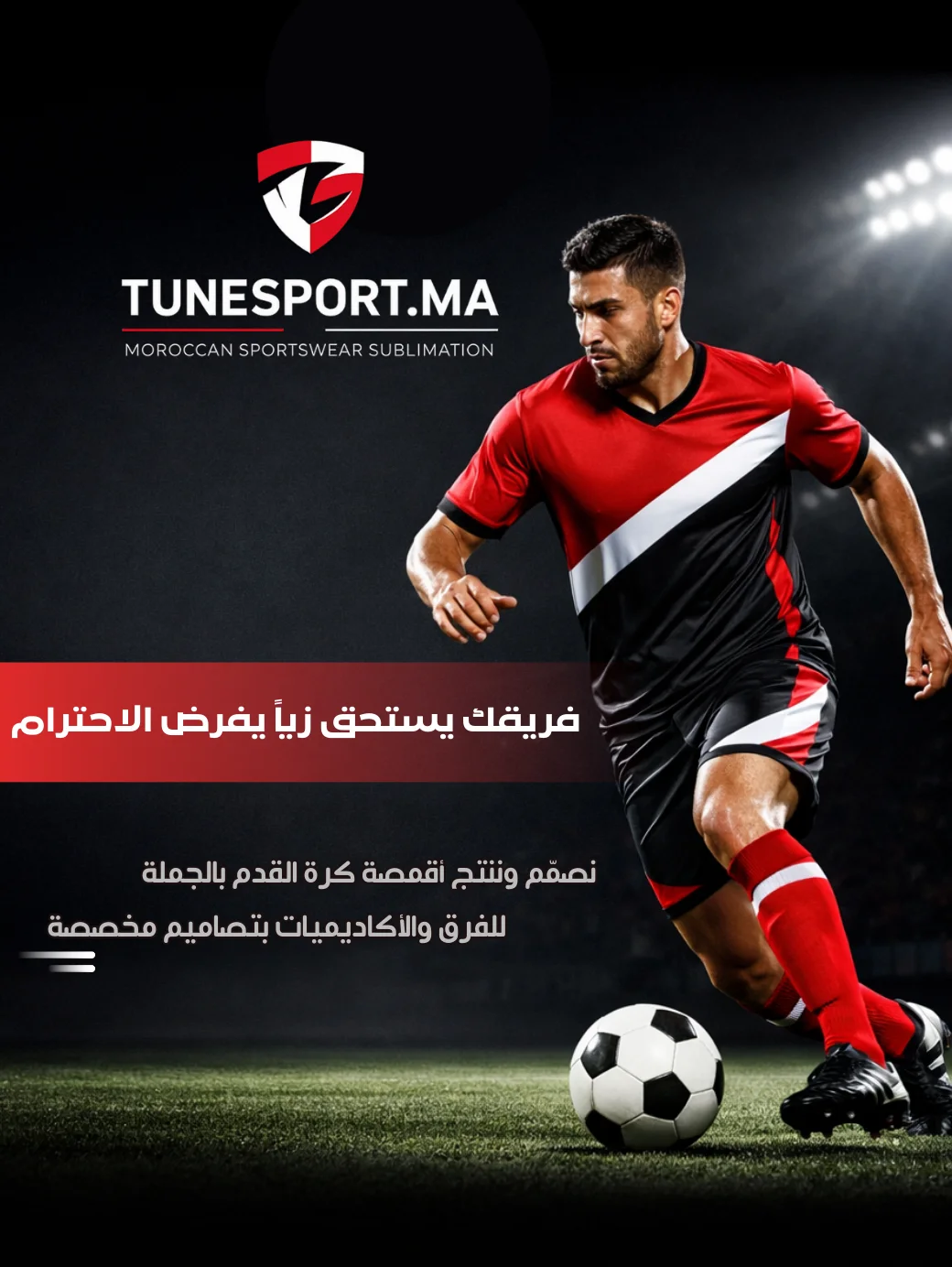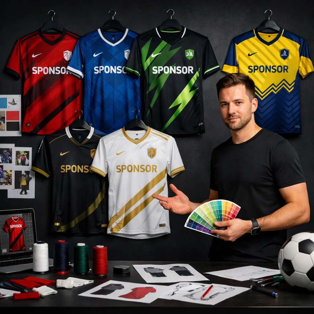 جميع التصاميم مخصصة 100% حسب طلبك. فريق التصميم لدينا ينشئ التصميم بناءً على ألوان فريقك وشعاره، ونرسل لك المعاينة قبل أي خطوة إنتاج.
