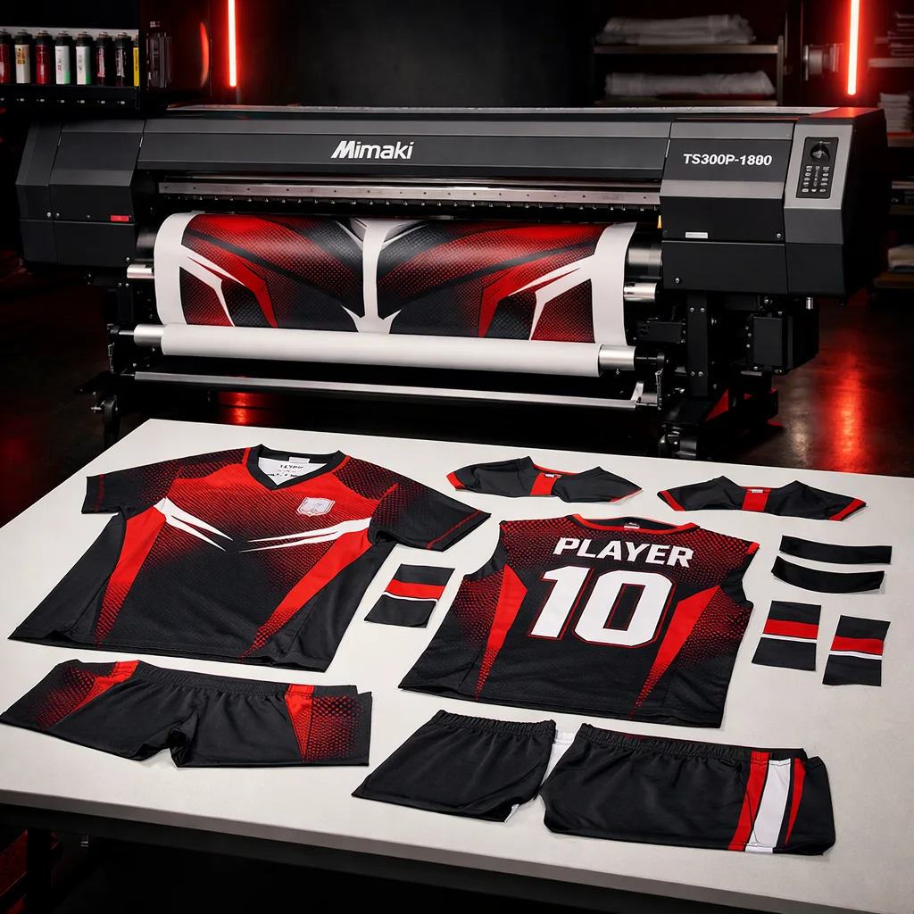 نعمل بتقنية السبليمسيون، وهي طباعة مدمجة داخل القماش لا تتقشر وتدوم مع الاستعمال والغسيل.
